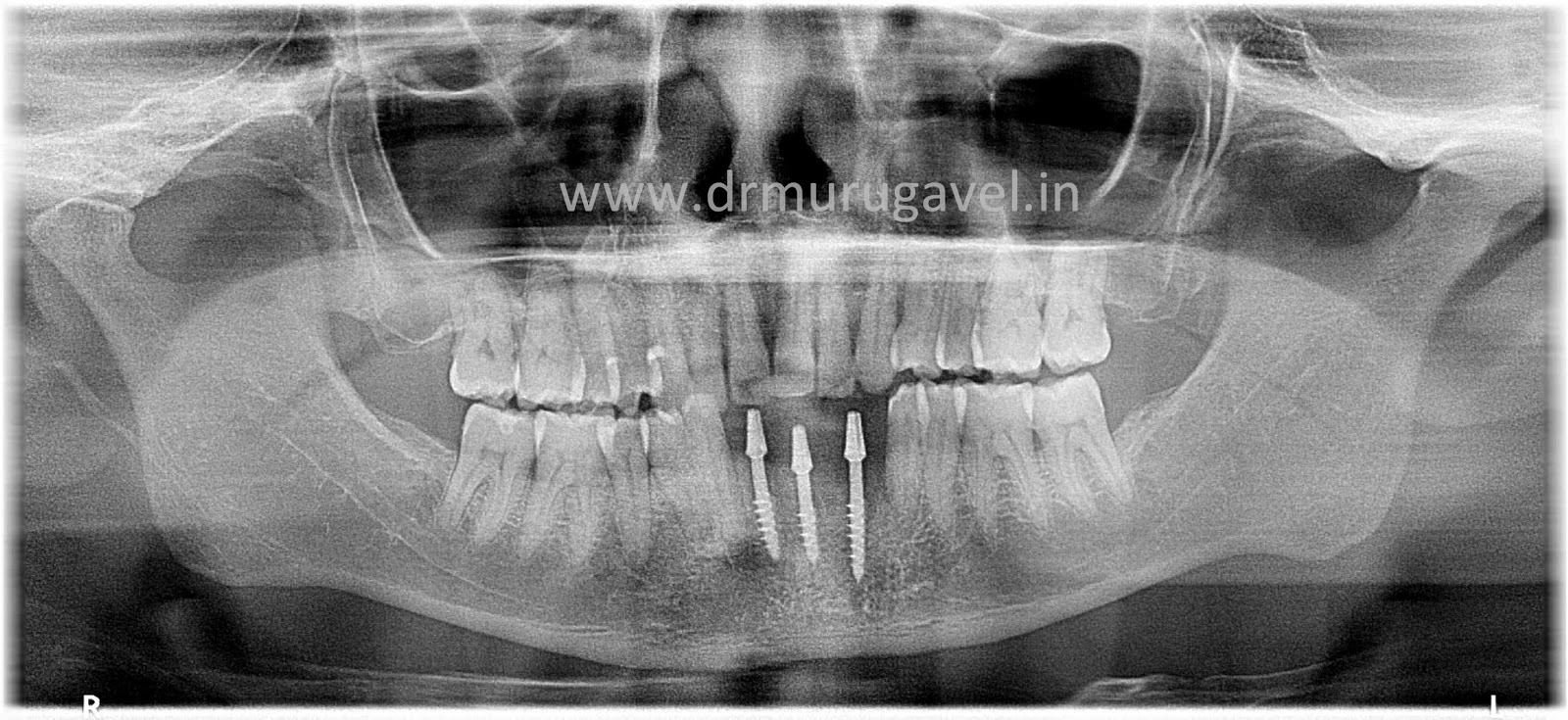 A patient from singapore came to our clinic with complaints of mobile teeth,bleeding gums,pus discharge,malodour in lower front teeth for the past 3 months.He was advised removal of teeth and immediate teeth replacement with basal implants.